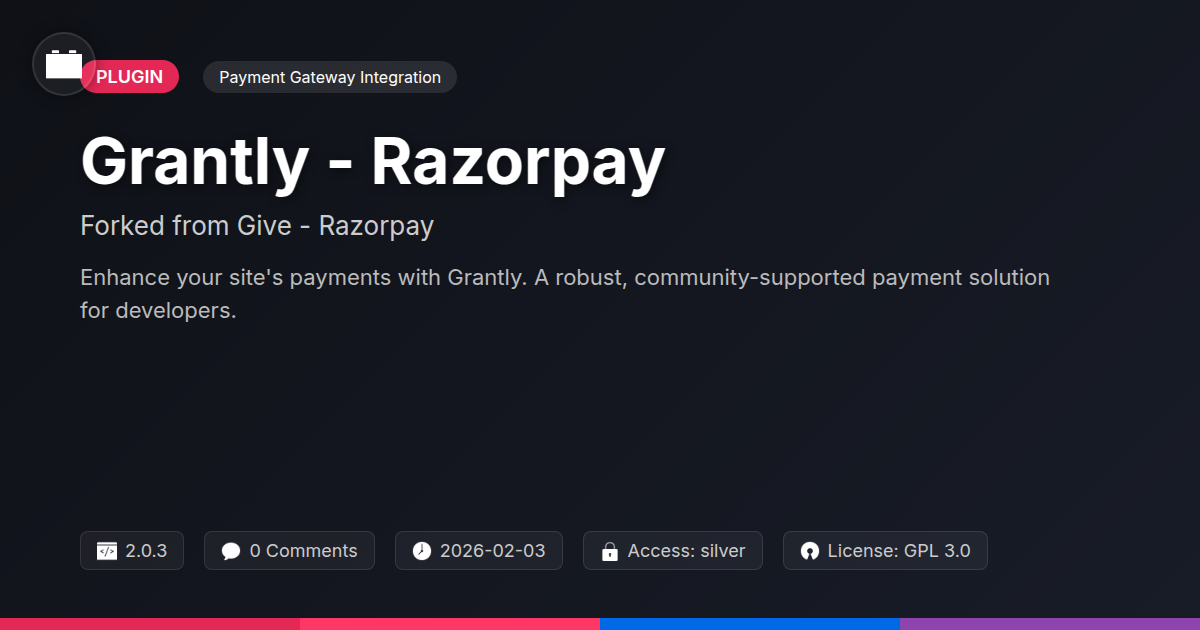 Developers, agencies: this is for you. Tired of cryptic APIs? Hate duct-taping brittle plugins? Grantly, a community-driven fork, offers a breath of fresh air. Its codebase shines. Active community contributions mean cleaner, more accessible code. Integration becomes a dream, not a nightmare. Customization is a breeze with clear hooks and filters. Updates are reliable. They won't shatter your entire setup. Forget patching and praying. Grantly empowers you. Deliver more value to clients, faster. Build stellar payment-integrated sites with ease. It’s your secret weapon. Make payments seamless. Focus on building, not battling. This is development made enjoyable.