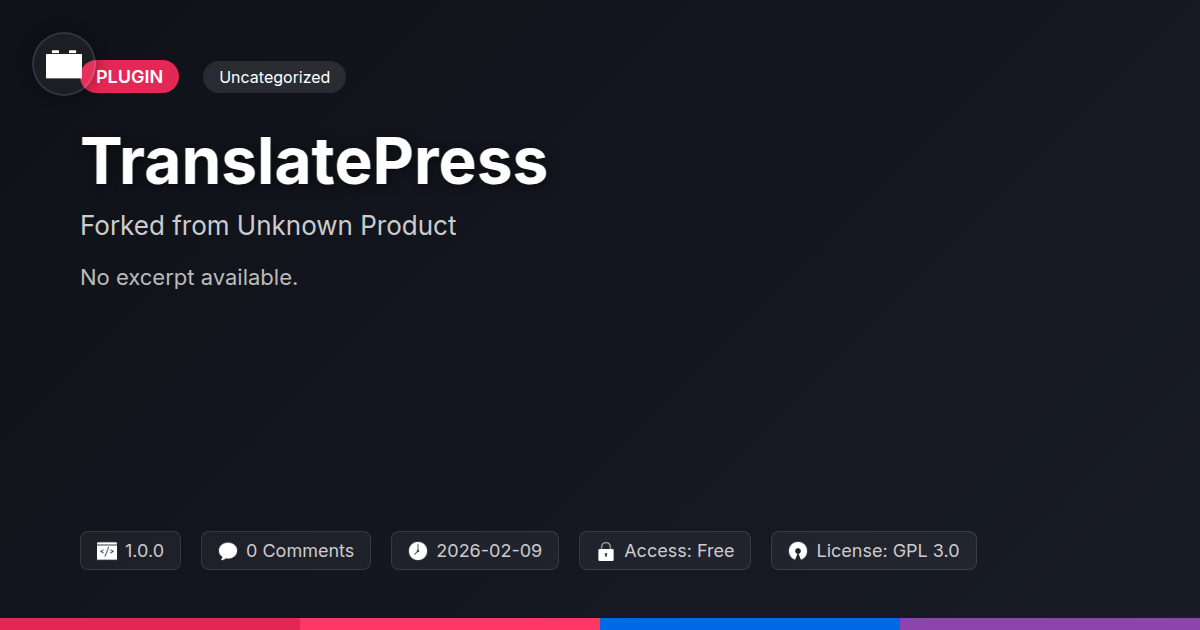 GrootMade is NOT affiliated with TranslatePress - Extra Languages Add-on or its original author. TranslatePress - Extra Languages Add-on™ is a trademark of its respective owner and use of it does not imply any endorsement or affiliation. This product has been forked under the GNU General Public License (GPL) and all non-GPL assets (such as proprietary images, fonts, and branding) have been removed. Distributing GPL-licensed code is 100% legal.