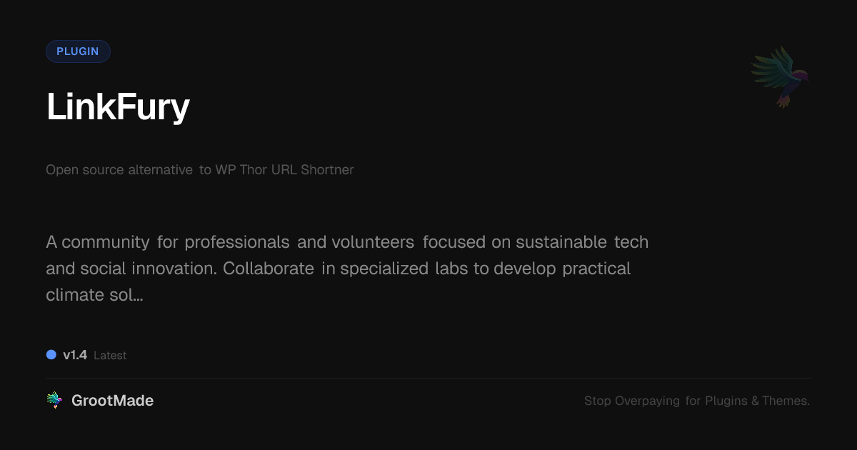 GrootMade is NOT affiliated with WP Thor URL Shortner or its original author. WP Thor URL Shortner™ is a trademark of its respective owner and use of it does not imply any endorsement or affiliation. This product has been forked under the GNU General Public License (GPL) and all non-GPL assets (such as proprietary images, fonts, and branding) have been removed. Distributing GPL-licensed code is 100% legal.