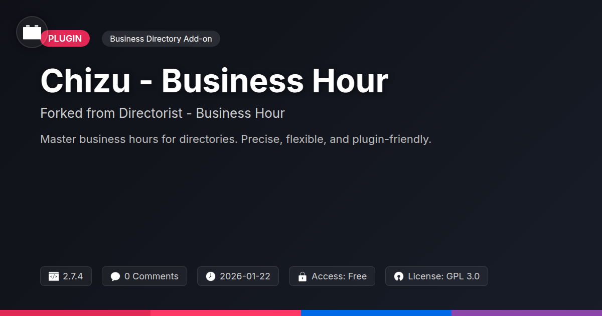 Is your business’s operating hours stuck in the digital dark ages? Do you find yourself constantly fielding calls or emails asking if you’re open on Tuesdays, or if your little artisanal pickle shop takes lunch breaks? If your website looks like it was designed by a committee of dial-up modems and your business hours are buried deeper than Atlantis, it’s time for a serious intervention (the good kind, with less chanting and more code). We get it. For developers and agencies wrangling complex client projects, or for the righteous warriors of the open-source realm, managing the minutiae of every single business can feel like herding digital cats. Existing directory plugins might offer a decent starting point, but what about that one crucial detail that makes or breaks a customer's visit? Enter Chizu - Business Hour. Think of it as the well-dressed, punctual cousin of your existing directory system, specifically designed to handle the nitty-gritty of opening times with the kind of sass and efficiency that makes the competition weep. We’re talking about a tool that understands that 'open' means more than just a green light on a website; it means specific times, days, exceptions, and the occasional holiday surprise. Forget the ‘set it and forget it’ approach that inevitably leads to confused customers and frustrated business owners. This is about precision, clarity, and saving everyone involved a whole lot of hassle. Ready to stop your clients from looking like they’re running a speakeasy without the cool jazz vibe?