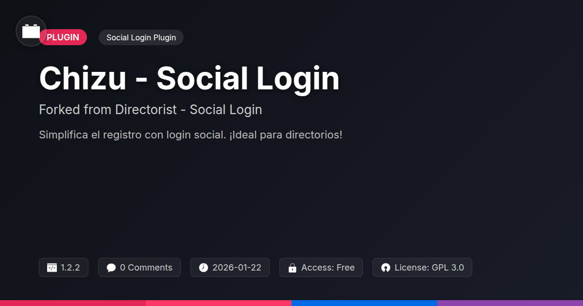 GrootMade is NOT affiliated with Directorist - Social Login or its original author. Directorist - Social Login™ is a trademark of its respective owner and use of it does not imply any endorsement or affiliation. This product has been forked under the GNU General Public License (GPL) and all non-GPL assets (such as proprietary images, fonts, and branding) have been removed. Distributing GPL-licensed code is 100% legal.