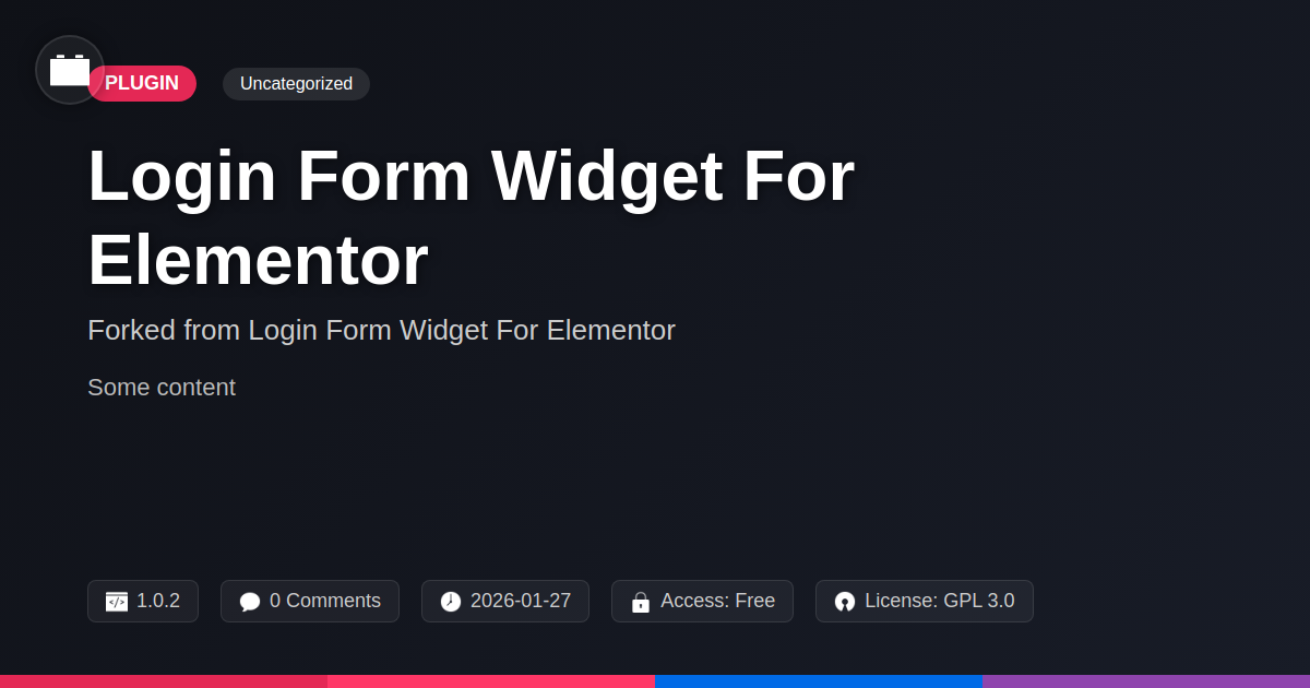 GrootMade is NOT affiliated with Login Form Widget For Elementor or its original author. Login Form Widget For Elementor™ is a trademark of its respective owner and use of it does not imply any endorsement or affiliation. This product has been forked under the GNU General Public License (GPL) and all non-GPL assets (such as proprietary images, fonts, and branding) have been removed. Distributing GPL-licensed code is 100% legal.