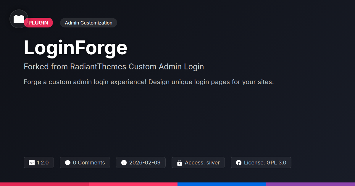 So, there you have it. That drab, unremarkable login screen that's been silently judging your clients (and probably you) is no longer an inevitable part of the web development process. LoginForge is here to rescue your admin gateway from the clutches of generic mediocrity. We’ve all been there, staring at a login page that feels as exciting as watching paint dry. But for the discerning developer, the meticulous agency, and the proud open-source advocate, that just won't do. Your digital properties are an extension of your brand, your craftsmanship, and your commitment to quality. Why should the entry point be anything less than spectacular? LoginForge, forged from a well-respected lineage, offers you the power to inject personality, reinforce your brand, and create a truly memorable first impression – all without needing a PhD in coding or a black belt in CSS wrangling. It’s about taking control, not just of your website’s functionality, but of its aesthetic from the very first click. Think of it as the handshake before the big meeting; it sets the tone. A polished, branded login speaks volumes about your professionalism and attention to detail. It’s a subtle yet powerful way to tell your clients and collaborators that you care about the finer points, that you deliver excellence, and that you’re not afraid to stand out from the beige crowd. It’s time to stop settling for ‘good enough’ and start forging login experiences that are as unique and impactful as the projects you build. Give your admin area the entrance it deserves, and let LoginForge be the tool that makes it happen. Your login page will thank you, and more importantly, so will your clients.