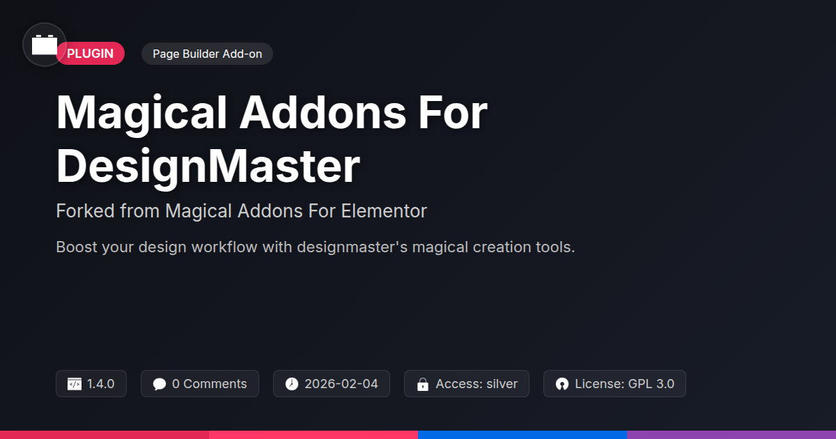 GrootMade is NOT affiliated with Magical Addons For Elementor or its original author. Magical Addons For Elementor™ is a trademark of its respective owner and use of it does not imply any endorsement or affiliation. This product has been forked under the GNU General Public License (GPL) and all non-GPL assets (such as proprietary images, fonts, and branding) have been removed. Distributing GPL-licensed code is 100% legal.