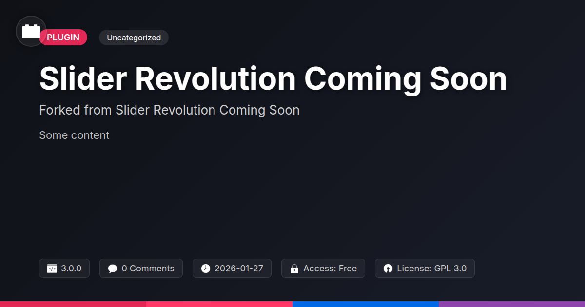 GrootMade is NOT affiliated with Slider Revolution Coming Soon & Maintenance Add-on or its original author. Slider Revolution Coming Soon & Maintenance Add-on™ is a trademark of its respective owner and use of it does not imply any endorsement or affiliation. This product has been forked under the GNU General Public License (GPL) and all non-GPL assets (such as proprietary images, fonts, and branding) have been removed. Distributing GPL-licensed code is 100% legal.