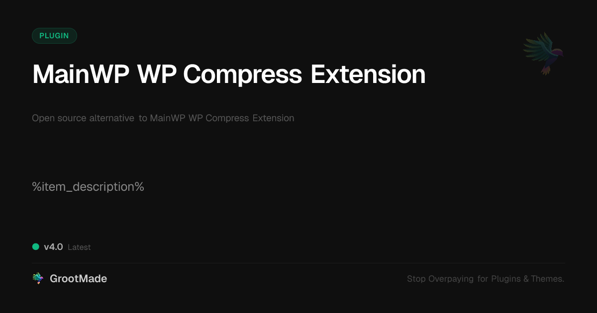 GrootMade is NOT affiliated with MainWP WP Compress Extension or its original author. MainWP WP Compress Extension™ is a trademark of its respective owner and use of it does not imply any endorsement or affiliation. This product has been forked under the GNU General Public License (GPL) and all non-GPL assets (such as proprietary images, fonts, and branding) have been removed. Distributing GPL-licensed code is 100% legal.