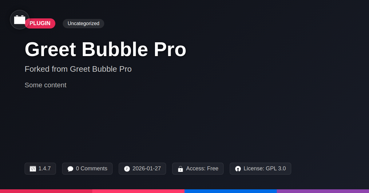GrootMade is NOT affiliated with Greet Bubble Pro or its original author. Greet Bubble Pro™ is a trademark of its respective owner and use of it does not imply any endorsement or affiliation. This product has been forked under the GNU General Public License (GPL) and all non-GPL assets (such as proprietary images, fonts, and branding) have been removed. Distributing GPL-licensed code is 100% legal.