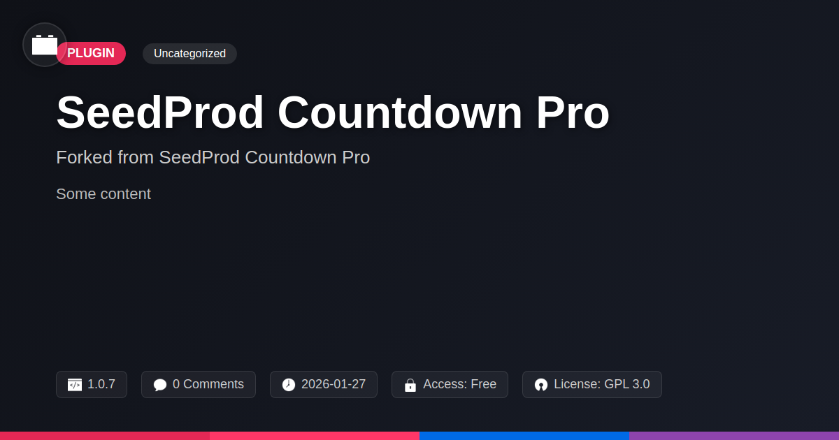 GrootMade is NOT affiliated with SeedProd Countdown Pro or its original author. SeedProd Countdown Pro™ is a trademark of its respective owner and use of it does not imply any endorsement or affiliation. This product has been forked under the GNU General Public License (GPL) and all non-GPL assets (such as proprietary images, fonts, and branding) have been removed. Distributing GPL-licensed code is 100% legal.