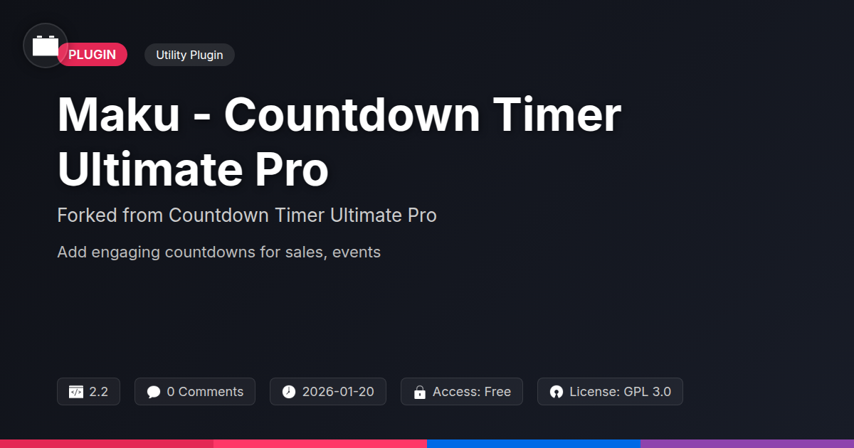 So, there you have it. You’ve navigated the landscape of digital urgency and emerged with a newfound appreciation for a tool that understands the developer's plight. Maku - Countdown Timer Ultimate Pro isn't just another plugin to add to your ever-growing list; it’s a strategic asset. It’s the digital equivalent of that perfectly timed wink you give your client when you know you've nailed the brief. We’ve seen how it leverages psychological triggers, offers a level of customization that’ll make your styling fingers tingle, and handles complex scenarios with the grace of a seasoned diplomat. For the agencies out there juggling multiple projects, this means less hair-pulling and more client-pleasing. For the solo developers, it’s about reclaiming precious hours you’d otherwise spend wrestling with inefficient code or clunky interfaces. And for the open-source aficionados, it represents a chance to be part of something evolving, a testament to the power of community collaboration. Remember that feeling when you find that one piece of code that just works? That's the Maku experience. It’s reliable, it’s powerful, and it’s built with an understanding of what it truly takes to build engaging online experiences. Don't let your deadlines be dictated by clunky tools; let Maku empower your projects. Go forth, create some glorious urgency, and watch those conversions climb. Happy timing!