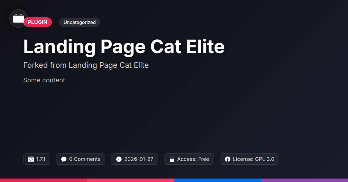 GrootMade is NOT affiliated with Landing Page Cat Elite or its original author. Landing Page Cat Elite™ is a trademark of its respective owner and use of it does not imply any endorsement or affiliation. This product has been forked under the GNU General Public License (GPL) and all non-GPL assets (such as proprietary images, fonts, and branding) have been removed. Distributing GPL-licensed code is 100% legal.