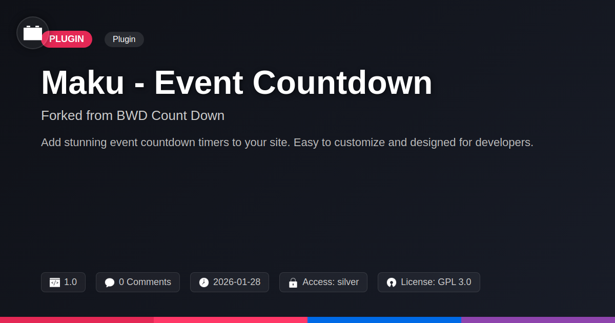 You've found a trusted countdown tool. It works. But it's static. It's time for an upgrade. That's where Maku comes in. Think of Maku as an evolution, not a clone. We took a solid foundation and made it better. We understand developer needs. We know agency demands. Maku is born from a thoughtful fork. This gives you real power. You get enhanced customization. The code is cleaner, easier to manage. It's built with the community in mind. We listen to what you need. Maku lets you do more. You're not locked into one path. It's about freedom and flexibility. This is your solution, refined. We honor its origins. But we are focused on the future. Your future, powered by Maku.