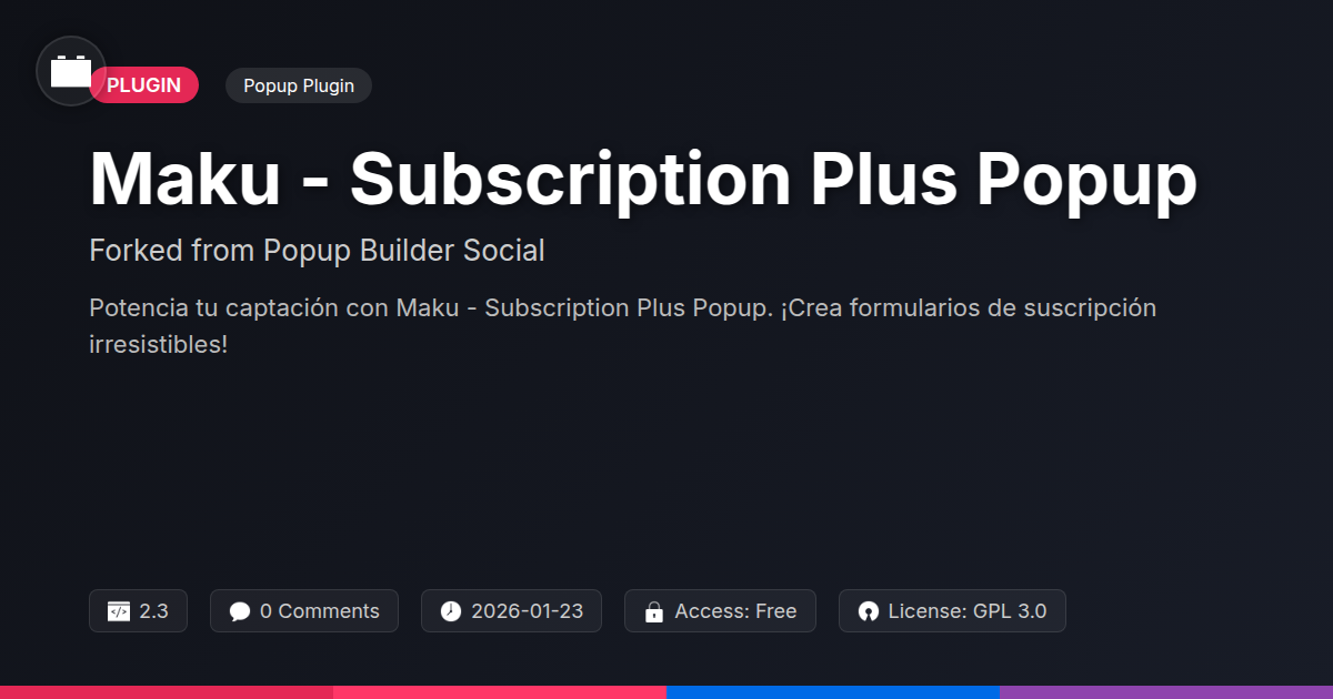 So, there you have it. If you're a developer who's spent too many late nights wrestling with subpar popup solutions, an agency founder tired of explaining why your lead generation efforts are 'almost there,' or just a plain ol' open-source enthusiast who appreciates a tool built with integrity and intelligence, Maku - Subscription Plus Popup is your new best friend. We've journeyed through its capabilities, from its elegant origins to its robust feature set, all wrapped up in a package that respects your time and your sanity. It’s about making lead generation less of a chore and more of a strategic, almost enjoyable, part of your online presence. No more banging your head against the wall trying to get basic functionality to work, and certainly no more sacrificing user experience for a few email addresses. This plugin offers the finesse and power you need to not only capture leads but to nurture them effectively, turning fleeting visitors into loyal customers. It’s a testament to what happens when a solid codebase gets a fresh coat of paint and a brain-load of thoughtful features. So, ditch the digital duct tape and embrace a solution that's built to last. Give your website the growth engine it deserves, and your subscribers the elegant welcome they won't forget. It's time to stop wishing for more leads and start making them happen, with a tool that actually works smarter, not just harder.