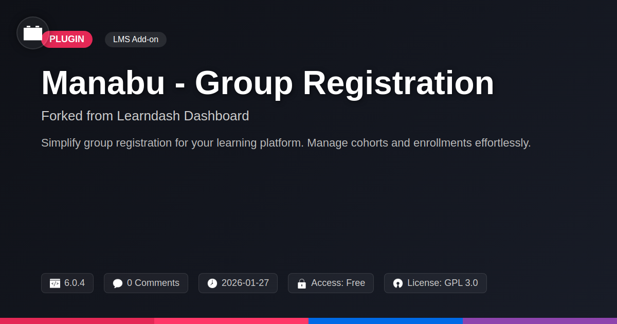 So, there you have it. We’ve journeyed through the often-overlooked wasteland of manual group enrollment, a place where productivity goes to die and sanity is a distant memory. We’ve introduced Manabu - Group Registration, not as some miracle cure peddled by snake oil salesmen, but as a genuinely effective, thoughtfully designed tool for anyone wrestling with learner cohorts. It’s the digital equivalent of finally finding that missing piece of a complex puzzle, or perhaps more accurately, realizing you didn’t need the puzzle at all because this tool just builds the picture for you. This isn't just about ticking boxes; it’s about reclaiming your time, reducing the errors that make you want to bang your head against the keyboard, and empowering your 'group leaders' (or whatever fancy title you bestow upon them) to manage their domains without needing a direct line to your personal support channel. We've seen how its robust features, coupled with a healthy dose of customization and a deep respect for its open-source heritage, make it an invaluable asset for developers, agencies, and anyone who appreciates code that’s both powerful and a joy to work with. It's a testament to what can be achieved when you take a solid foundation and build upon it with intelligence, a touch of wit, and a commitment to solving real-world problems. Stop letting tedious administrative tasks dictate your workflow. Embrace the efficiency, the control, and yes, even the occasional snarky comment that comes with a well-crafted piece of software designed by people who understand your plight. It's time to elevate your learning platform's group management from a chore to a strength. Go forth and enroll with confidence, you've earned it. Likely, you’ve more than earned it.