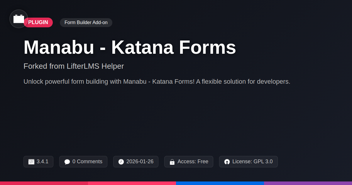 So, there you have it. Manabu - Katana Forms. It's not just another form plugin to clutter up your dashboard; it's a statement. It's a declaration that you, the developer, the agency, the open-source devotee, deserve tools that are as powerful, flexible, and unpretentious as your own work. You're likely nodding along, perhaps with a wry smile, remembering the countless hours spent wrestling with plugins that promise the world and deliver… well, a slightly fancier contact form. We get it. That's why this fork exists – to take a proven foundation and refine it for those who push the boundaries, who demand granular control, and who appreciate the elegance of efficient, well-crafted code. It’s for the builders, the tinkerers, the problem solvers who see a form not just as an input field, but as a gateway to complex interactions, sophisticated workflows, and ultimately, a better user experience for their clients. Forget the proprietary shackles and the endless upsells. Embrace the freedom, the power, and the sheer practicality of a tool that respects your intelligence and empowers your creativity. Manabu - Katana Forms is your reliable blade, honed and ready to tackle any form-building challenge you throw at it. Now go forth and build something awesome.
