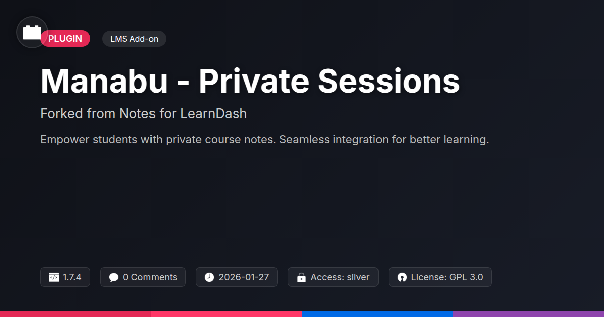 Tired of battling inscrutable plugins that resemble spaghetti code disguised as features? Agencies, we see you. Developers, we feel your pain. Introducing Manabu - Private Sessions. It's the enhancement your clients crave, built with your sanity in mind. Integration? A breeze. Setup? Almost embarrassingly simple. Manabu just works. It adds genuine value, elevating your client's learning platform without becoming a constant headache. Forget nightly fixes and panicked client calls. Think of it as a beautifully crafted tool, thoughtfully designed. It’s the kind of elegant solution that makes your agency look brilliant. Clients love the personalized learning experience. You love not pulling your hair out. This is how you stand out. Embrace the clarity of well-architected, open-source-minded code. Your clients get more. You get fewer nightmares.