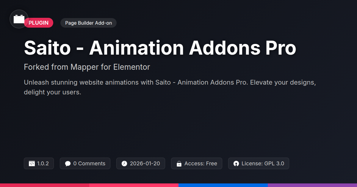 Tired of static websites that put your audience to sleep faster than a lullaby sung by a chatbot? Do you find yourself staring at your screen, wondering how to inject some serious 'wow' factor into your digital creations without resorting to a developer's hourly ransom? Well, buckle up, buttercup, because we're about to dive into something that might just make your inner control freak do a little jig. Imagine a tool that takes the core principles of those handy mapping companions you already know and love, but supercharges them with an animation arsenal that would make a Hollywood special effects team jealous. That's right, we're talking about Saito - Animation Addons Pro. Think of it as the rebellious, cooler cousin of those foundational tools, forked with a singular mission: to bring your web designs to life with effortless, eye-catching motion. Whether you're a seasoned developer who thrives on clean code and customization, an agency looking to wow clients with dynamic presentations, or a proud proponent of the open-source philosophy who believes in the power of community-driven innovation, Saito is here to shake things up. It’s for those who appreciate a solid foundation but crave the freedom to add that extra sparkle, that subtle shimmer, that dramatic entrance that leaves visitors begging for more. So, if you're ready to ditch the dull and embrace the dynamic, stick around. We're about to explore how Saito can turn your standard web pages into animated masterpieces.