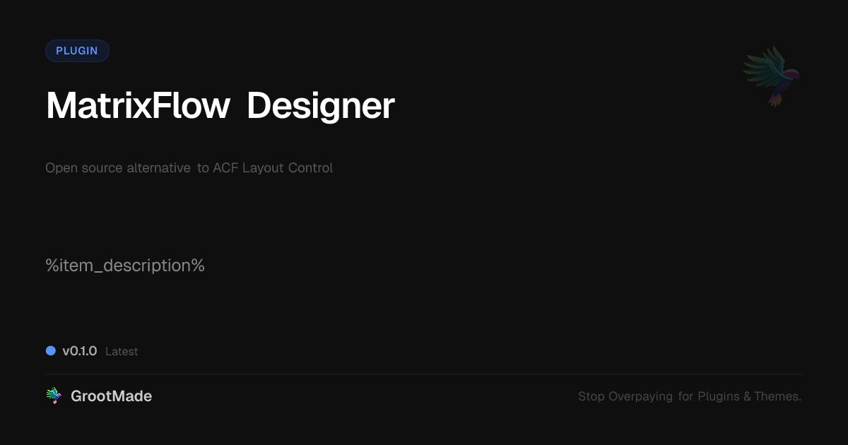 GrootMade is NOT affiliated with ACF Layout Control or its original author. ACF Layout Control™ is a trademark of its respective owner and use of it does not imply any endorsement or affiliation. This product has been forked under the GNU General Public License (GPL) and all non-GPL assets (such as proprietary images, fonts, and branding) have been removed. Distributing GPL-licensed code is 100% legal.