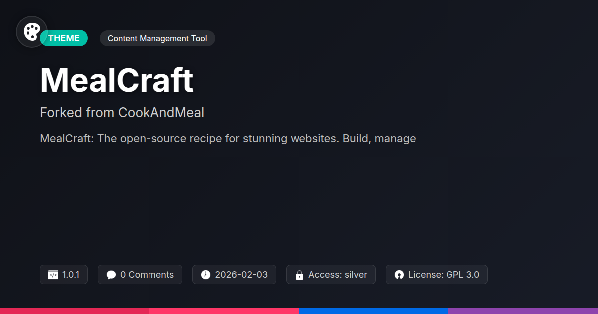 Tired of your website feeling like a recipe for disaster, blending together conflicting functionalities and demanding more effort than a soufflé in a hurricane? Are you a developer who dreams in clean code and agency owner who strategizes in seamless client delivery, constantly on the hunt for tools that actually work and don’t require a PhD in digital alchemy to operate? We get it. The digital kitchen is a messy place, and sometimes you just want a tool that’s already prepped, seasoned, and ready to serve up a masterpiece. Enter MealCraft, a powerful culinary-themed ecosystem built on the bedrock of robust open-source principles, meticulously crafted to be the secret ingredient in your next sensational web project. This isn’t just another templated solution; it’s a complete refactor, a vibrant fork designed to streamline your workflow, delight your clients, and, dare we say, make managing content a joy. Forget the endless debugging sessions and the feature bloat of lesser tools. MealCraft is about elegance, efficiency, and empowering you to build stunning digital experiences without breaking a sweat (or the bank). Prepare to revolutionize how you approach content creation and management – your digital pantry is about to get a serious upgrade.