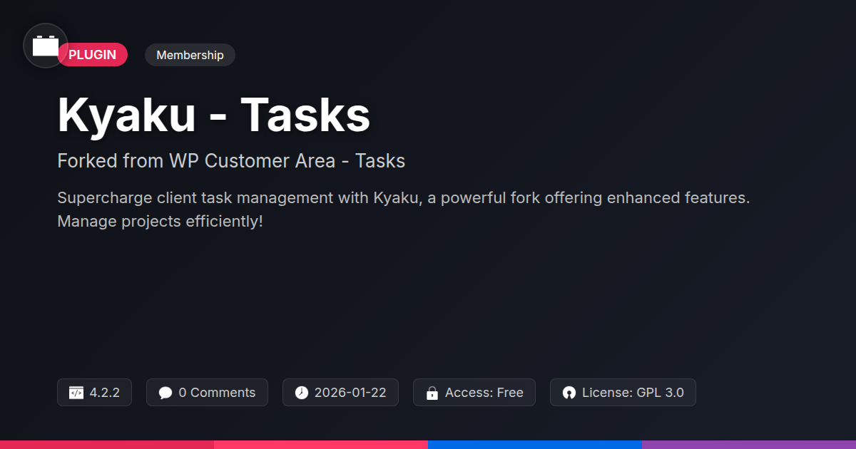 So, there you have it. Kyaku - Tasks. It’s not a magic wand that will suddenly make your clients write poetry about your punctuality (though wouldn't that be nice?). What it is, however, is a seriously practical, no-nonsense tool designed by people who actually build things for a living. We’ve all been there, drowning in a sea of email threads that vaguely resemble a project plan, or trying to find that one critical file buried three levels deep in a forgotten shared drive. Kyaku - Tasks throws a life raft into that chaotic ocean. It’s the digital equivalent of finally finding that matching sock; it just makes sense. By centralizing your client interactions, project statuses, and deliverables, you’re not just tidying up your digital workspace – you’re reclaiming your focus. This means more time for actual coding, more time for creative problem-solving, and frankly, more time to stare blankly at a wall and ponder the existential nature of CSS. For developers, agencies, and even our beloved open-source tinkerers, this plugin offers a robust, reliable, and refreshingly straightforward way to manage client relationships without the usual corporate fluff. It’s a fork, yes, but a fork from a sturdy tree, ensuring you’re building on a solid foundation. So, stop wrestling with your current system and give Kyaku - Tasks a go. You might just find that managing clients can be less of a chore and more of a… well, managed process. And in our line of work, that’s practically progress.