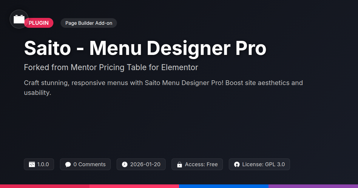 So there you have it, folks. Saito - Menu Designer Pro isn't just another plugin; it's your ticket out of menu mediocrity and into a world of refined, responsive, and frankly, rather gorgeous navigation. We've taken a solid, dependable framework – the kind that doesn't crumble under pressure – and infused it with the kind of creative freedom you've been craving. Whether you're a lone wolf developer looking to add some flair to your projects, part of a crack agency team needing to deliver top-notch user experiences consistently, or an open-source enthusiast who appreciates tools built with integrity and community in mind, Saito has your back. You can finally stop wrestling with inflexible themes and start building menus that actually enhance your site’s usability and aesthetic. Think of all the time you'll save not fighting with subpar controls, time you can now spend perfecting that killer one-page site or coding that next groundbreaking feature. With its intuitive interface and powerful customization options, Saito - Menu Designer Pro brings the design studio to your dashboard. It’s time to make your users’ journeys as delightful as their destination. Go forth, design boldly, and let your website’s navigation do the talking (eloquently, of course).