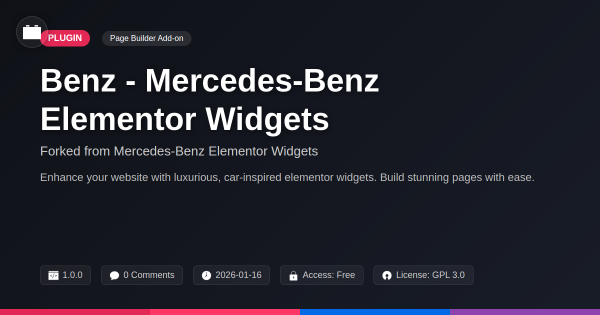 GrootMade is NOT affiliated with Mercedes-Benz Elementor Widgets or its original author. Mercedes-Benz Elementor Widgets™ is a trademark of its respective owner and use of it does not imply any endorsement or affiliation. This product has been forked under the GNU General Public License (GPL) and all non-GPL assets (such as proprietary images, fonts, and branding) have been removed. Distributing GPL-licensed code is 100% legal.