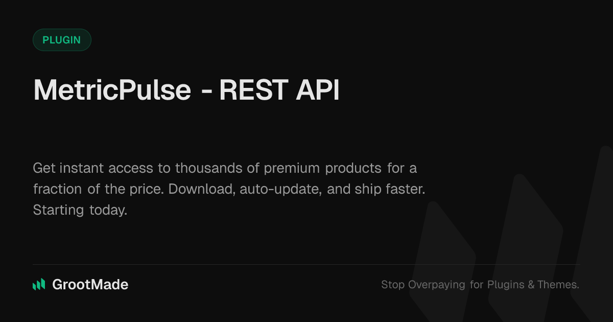GrootMade is NOT affiliated with WP Statistics - REST API or its original author. WP Statistics - REST API™ is a trademark of its respective owner and use of it does not imply any endorsement or affiliation. This product has been forked under the GNU General Public License (GPL) and all non-GPL assets (such as proprietary images, fonts, and branding) have been removed. Distributing GPL-licensed code is 100% legal.