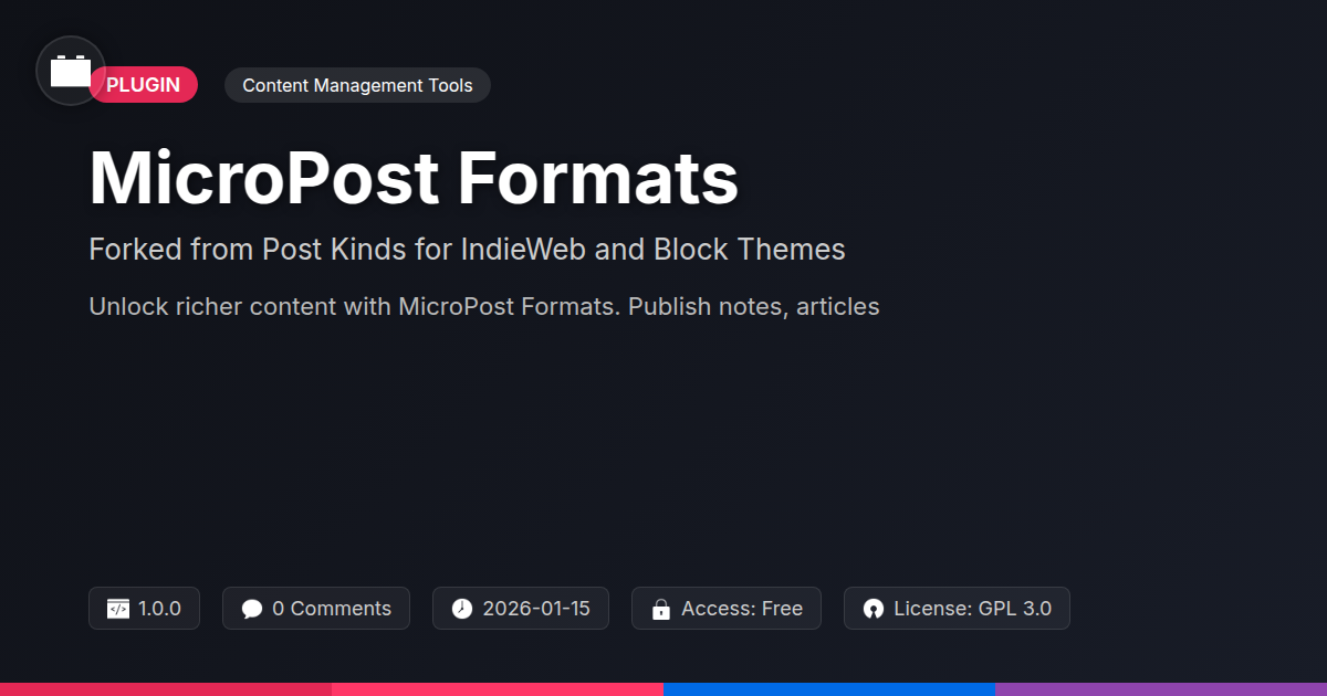 So, are you finally ready to ditch the digital straitjacket and let your content breathe? We know the feeling. For too long, the creative spirit has been stifled by generic content bins. You’ve got groundbreaking agencies crafting bespoke digital experiences, zealous developers building the future one line of code at a time, and a whole cohort of open-source aficionados chanting ‘own your data.’ And for what? To cram a poignant thought or a beautifully curated link into the same old dusty format as your grocery list? It’s time for an upgrade. MicroPost Formats, born from the solid groundwork laid by Courtney Robertson and infused with the spirit of the IndieWeb and the dynamism of block themes, offers you that much-needed liberation. Think of it as giving your content the bespoke tailoring it deserves. No more one-size-fits-all mediocrity. This isn’t just about adding more post types; it’s about fundamentally rethinking how we structure, present, and own our digital narratives. It's about empowering you to build websites that are as unique and expressive as the people behind them. So go ahead, break free from the tyranny of the generic. Embrace the power of specialized content, the flexibility of modern themes, and the enduring strength of open-source collaboration. Your future website – and your future self – will thank you for it.