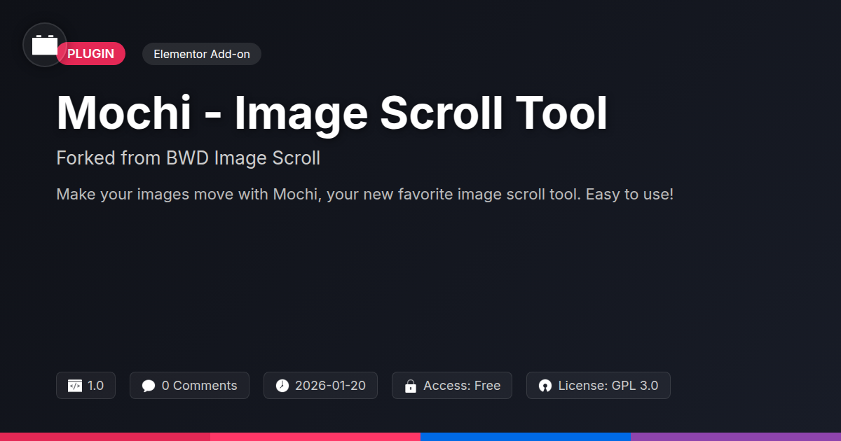So, static images giving your visitors the digital equivalent of watching paint dry? We get it. That's where Mochi swoops in. Think of it as a spiritual successor, a friendly fork from a beloved free tool. No proprietary handcuffs here, just pure, unadulterated, open-source awesomeness. Developed with love by the brilliant minds at Best WP Developer, Mochi is designed for you. Developers, sick of reinventing the wheel? Agencies, needing slicker client sites without the budget bloat? Or maybe you're just a free-tool fanatic (we salute you!). Mochi makes adding dynamic image scrolls ridiculously simple. No coding wizardry required for basic magic. It’s about breathing life into your visuals. Prepare for images that actually, you know, move. This isn't your grandma's slideshow. Get ready to make your content pop. Discover the joy of intuitive controls and unleash your creative spark. Your website deserves more than a yawn.