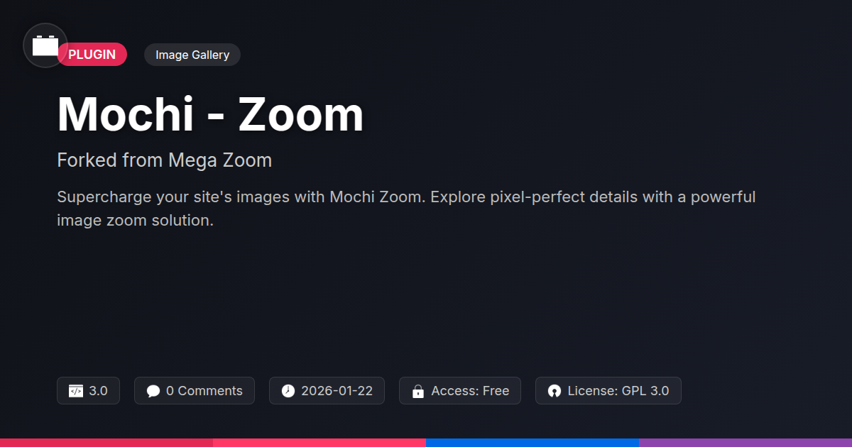 So, there you have it. Mochi Zoom. If you've ever stared at a blurry, pixelated mess where a stunning, high-resolution image should be, you know the pain. We’ve all been there, wrestling with clunky scripts and wondering if there's a better way to showcase those breathtaking visuals. Well, guess what? There is. Mochi Zoom isn't just another plugin; it’s the digital equivalent of finally finding that perfectly calibrated lens for your website’s camera, ensuring every detail pops. Think of it as an upgrade for your eyeballs, and more importantly, for your visitors'. For developers, it means less time tinkering with finicky code and more time building actual, you know, cool stuff. For agencies, it’s about delivering polished, professional results that make clients ooh and aah (and promptly sign that contract renewal). And for the pure open-source souls out there, it's a robust, well-engineered tool that just works, getting out of your way so you can do your thing. It handles those massive, retina-beating images like a champ, offering smooth panning and intuitive zooming that’ll make users feel like they’re actually there. So, ditch the frustration, embrace the clarity, and let Mochi Zoom turn your image galleries from “meh” to “magnificent.” Your pixels will thank you. Your clients will thank you. And let’s be honest, you’ll probably thank us too.