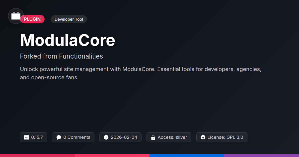 So there you have it. ModulaCore. It’s the developer tool that finally lets you ditch the digital clutter and embrace the elegance of just what you need. We’ve all been there, right? Staring at a plugin dashboard that looks like a Christmas tree exploded, with more options than you have fingers, and half of them are probably broken anyway. ModulaCore is the antidote. It’s the lean, mean, functionality machine built on principles that actually make sense in the real world of development. From its robust, reliable core, forked and refined with care, to its open-source spirit that invites collaboration, ModulaCore is more than just a set of tools; it’s a statement against the unnecessary complexity that plagues our industry. Developers, agencies, and anyone who secretly enjoys the purity of well-crafted code – this is for you. You get the power you need, without the bloat you dread, and the transparency you deserve. It’s about reclaiming your development sanity, building faster, smarter, and with a whole lot less head-scratching. So, go on. Give it a spin. Install it, play with it, and experience the refreshing simplicity of a tool that respects your time and your craft. Because let’s be honest, you’ve got better things to do than fight with your software. You’ve got sites to build, clients to impress, and maybe, just maybe, a few sarcastic comments to craft about how much easier things are now. Welcome to the lean side.