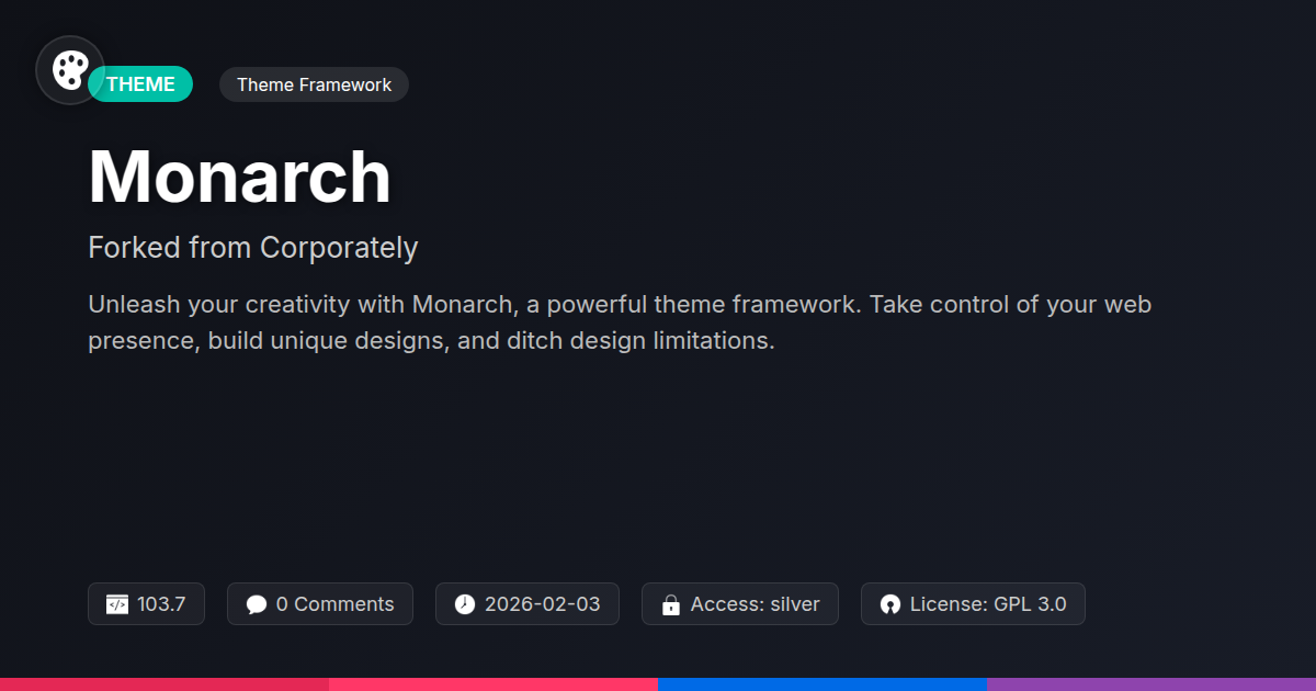 Tired of themes that feel like straightjackets for your creativity? Ever looked at a client's website and thought, 'If only I could just move this one thing…'? What if you could ditch those restrictive boxes and build something truly unique, something that sings with your brand's personality, without being tethered to a single, inflexible vision? For too long, the digital landscape has been dotted with themes that promise the world but deliver a beautifully decorated cage. We’re talking about those themes where every tweak requires a wrestling match with convoluted code or the obscure settings of a bloated page builder. It’s enough to make any developer or agency owner want to scream into the void, right? Well, take a deep breath, because there’s a better way. Imagine a robust foundation, one that’s been battle-tested and refined, but with the freedom to build your way. A system that respects your expertise and empowers you to deliver exceptional results without compromise. Monarch, forked from the esteemed Corporately, is that breath of fresh air. It’s not just another theme; it’s a powerful framework designed for those who refuse to settle, for those who demand control, and for those who believe that the best building blocks are open and adaptable. Get ready to unleash your digital architecture.