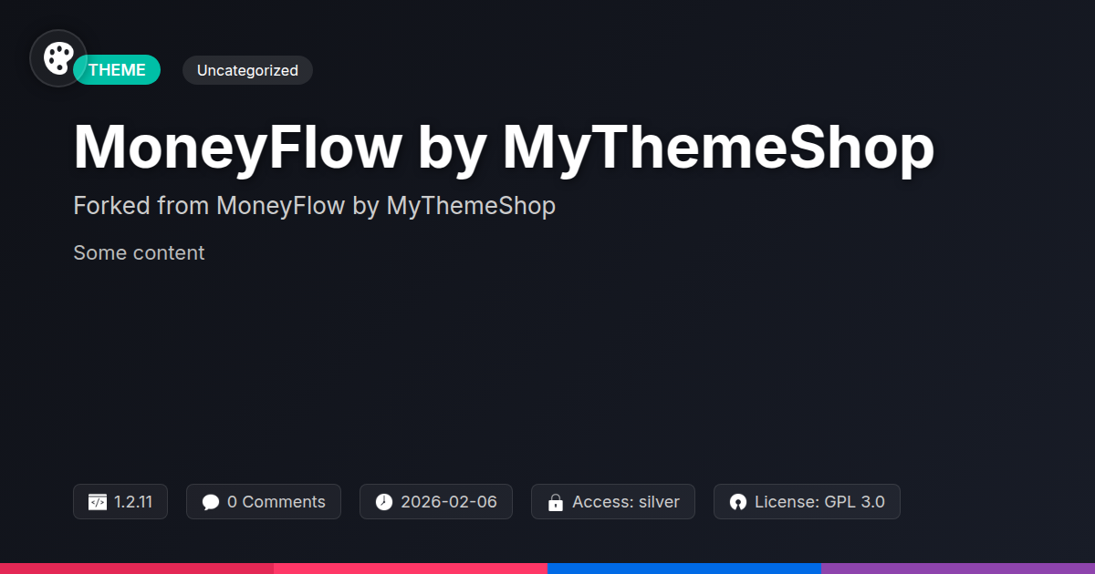 GrootMade is NOT affiliated with MoneyFlow by MyThemeShop or its original author. MoneyFlow by MyThemeShop™ is a trademark of its respective owner and use of it does not imply any endorsement or affiliation. This product has been forked under the GNU General Public License (GPL) and all non-GPL assets (such as proprietary images, fonts, and branding) have been removed. Distributing GPL-licensed code is 100% legal.