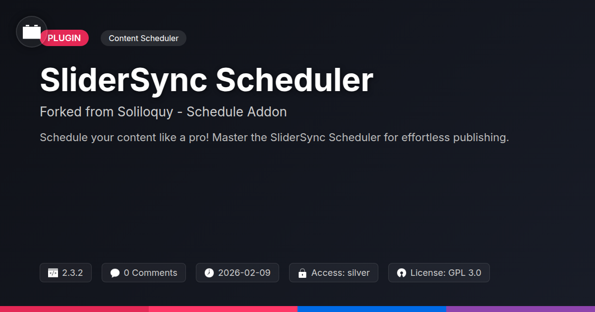 Ever stared at your content calendar, feeling the creeping dread of manually publishing posts on a strict schedule? Do you find yourself frantically logging in at midnight, just to hit that 'publish' button before your tea gets cold? Yeah, we've all been there. It's like being a content-obsessed hamster on a wheel, right? Because let's be honest, as developers and agency wizards, your time is better spent conjuring up groundbreaking digital experiences, not babysitting a publishing schedule. You've got clients to impress, code to deploy, and probably a backlog of memes to scroll through. So, what if I told you there's a way to reclaim those precious hours, a magical wand for your content workflow? Introducing SliderSync Scheduler, forked from the renowned Soliloquy - Schedule Addon, a tool built by folks who understand the pain of manual publishing. This isn't just another plugin; it's your new digital assistant, ready to orchestrate your content releases with the precision of a Swiss watch and the flexibility of a seasoned improv comedian. Think of it as your content's personal concierge, ensuring everything appears exactly when and where you want it, without you lifting a finger (unless it’s to pat yourself on the back for choosing such a brilliant solution). We're talking about giving you back control, peace of mind, and maybe even a few extra minutes to actually enjoy that cup of tea. Ready to ditch the midnight oil and embrace effortless content publishing?