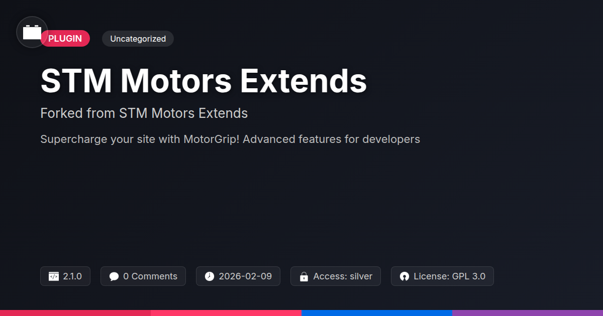 GrootMade is NOT affiliated with STM Motors Extends or its original author. STM Motors Extends™ is a trademark of its respective owner and use of it does not imply any endorsement or affiliation. This product has been forked under the GNU General Public License (GPL) and all non-GPL assets (such as proprietary images, fonts, and branding) have been removed. Distributing GPL-licensed code is 100% legal.