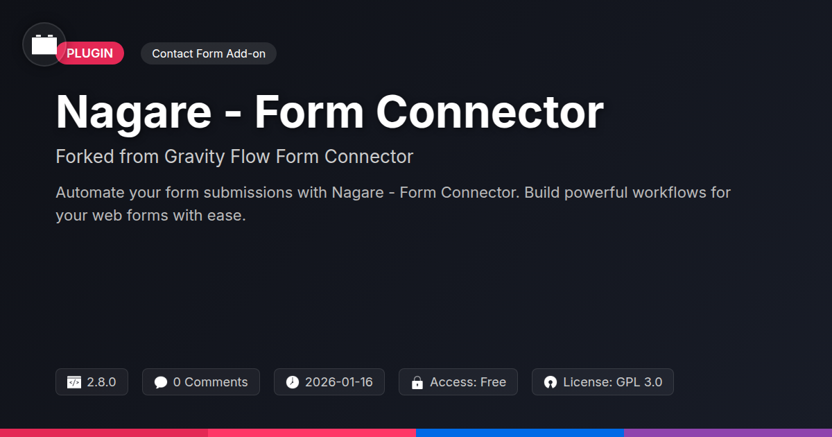 So, there you have it. We've journeyed through the digital labyrinth of form submissions and emerged with the gleaming prize: Nagare - Form Connector. You've seen how it’s not just another plugin; it’s a meticulously crafted tool, born from a solid lineage and forged with an open-source spirit, designed explicitly for those who wield the digital brushstrokes of the web. For the developers, the agencies, the pragmatic optimists who look at a problem and see an opportunity for elegant automation, Nagare is your new best friend. We’ve peeled back the layers, revealing its impressive arsenal of features – from the seemingly magical drag-and-drop workflow builder that lets you choreograph complex processes, to the nuanced conditional logic that respects the messy, beautiful non-linearity of real-world scenarios. This isn't about adding complexity; it's about taming it through intelligent design. And let's not forget the beauty of its open-source heart. No walled gardens here, just a community-driven platform that respects your freedom and empowers your creativity. Whether you're looking to streamline approvals, automate tedious data entry, or simply ensure that every form submission leads to a purposeful action, Nagare - Form Connector provides the engine. Stop drowning in data, and start building workflows that work as hard as you do. The era of passive forms is over. Embrace the automation, embrace the control, and let Nagare - Form Connector redefine what you thought was possible with your web forms.