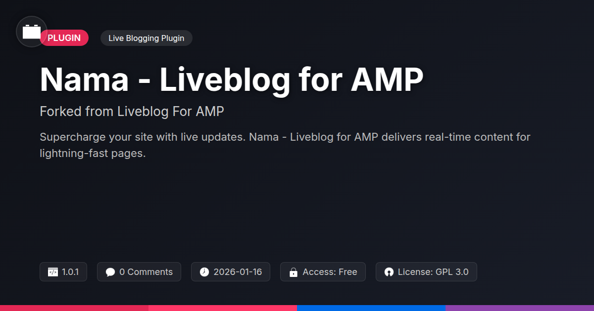 So, there you have it. If you’ve ever felt the sting of choosing between a vibrant, live-updating website and one that loads faster than a greased cheetah, you’re not alone. This whole industry seems to love presenting us with false dichotomies, doesn't it? But Nama - Liveblog for AMP is here to throw a wrench into that tired narrative. It’s proof that you don’t need to sacrifice your meticulously crafted performance for the sake of engaging your audience in real time. Think of it as adding a turbocharger to your already souped-up vehicle; it’s not about making it noisier, it’s about making it achieve more, faster. For the unsung heroes behind the sleek interfaces – you, the developers, the agencies who build digital dreams, and the open-source advocates who champion innovation – this is your new go-to. It’s the tool that respects your craft, understands your priorities, and, dare we say, might even make you chuckle with its sensible approach. It’s not just about posting updates; it’s about delivering experiences that are as instant and exhilarating as the events they cover, all while keeping your site in the digital fast lane. So, ditch the compromise, embrace the speed, and let your content shine in real time.