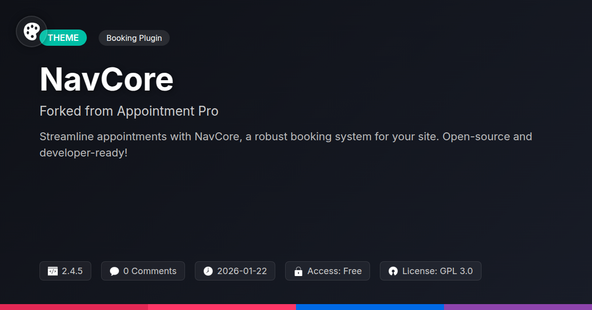 So there you have it – NavCore. It's not just another booking plugin; it's a testament to the power of open-source development, a tool built for developers, by developers (with a little help from a solid legacy). We’ve taken a proven concept and infused it with the flexibility and freedom that you, the discerning WordPress developer, actually crave. No more vendor lock-in, no more proprietary shackles that stifle your creativity. With NavCore, you gain control. You gain the ability to tailor the booking experience precisely to your clients' needs, integrate it seamlessly into their existing workflows, and frankly, impress them with your technical prowess. It’s about efficiency, it’s about control, and it’s about building a better web, one beautifully functioning appointment system at a time. Whether you're a solo dev, part of a bustling agency, or just an open-source enthusiast who enjoys making things work better, NavCore is ready for you. Dive in, explore, contribute, and let’s make appointment scheduling less of a headache and more of a superpower. The power to navigate your client's schedule, elegantly and effectively, is now in your hands.