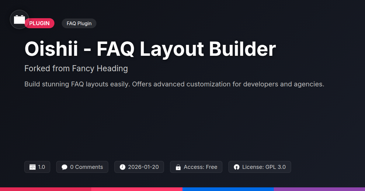 So, there you have it. You've journeyed through the not-so-arduous landscape of creating stellar FAQ sections with Oishii - FAQ Layout Builder. We've established that your website's knowledge base doesn't have to be a dull, monochromatic chore to build or consume. Remember those client calls where they pleaded for 'something spicier' than a basic bulleted list? Or those internal team meetings where you spent more time debating font pairings than actual content? Oishii is here to rescue you from that design purgatory. It’s the digital equivalent of finding out your bland oatmeal has been secretly infused with artisanal cinnamon and a dash of espresso – surprising, delightful, and frankly, makes mornings (or website updates) much, much better. For the code slingers out there, it’s about spending less time wrangling CSS for a simple accordion and more time architecting the next big thing. For the agency wizards, it means delivering polished, client-pleasing features faster, freeing up precious billable hours. And for everyone else, it's about making information accessible and, dare we say, enjoyable. This isn't just another plugin; it’s an upgrade to your website's communication strategy. Stop letting your FAQs languish in the digital equivalent of the lost sock dimension. Give them the shine they deserve. Make them interactive, make them engaging, and most importantly, make them yours. It’s time to build FAQs that people actually want to read, not just tolerate. Go forth and build something awesome – your users will thank you (probably with fewer angry emails).