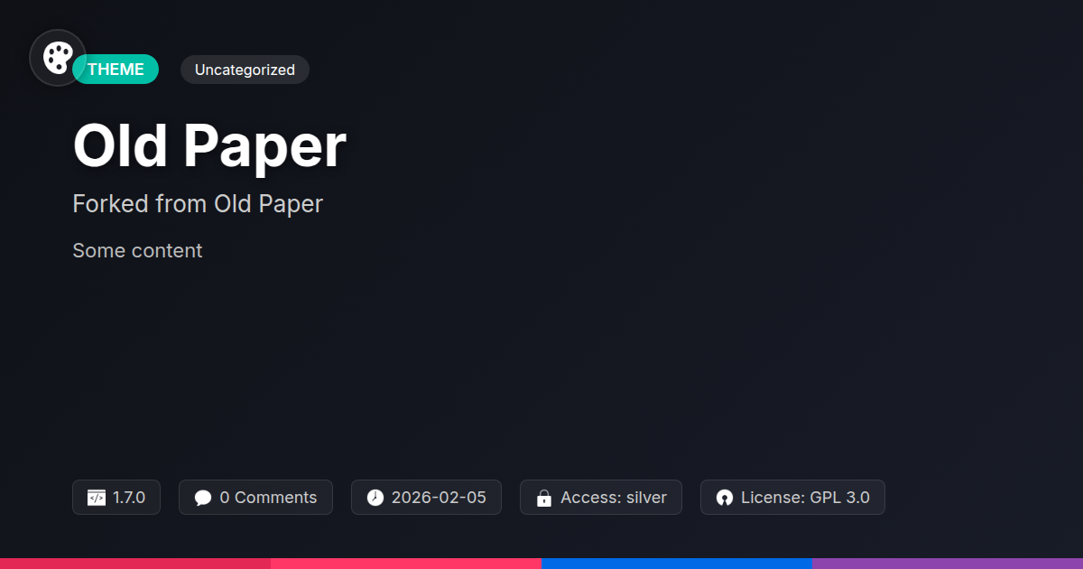 GrootMade is NOT affiliated with Old Paper or its original author. Old Paper™ is a trademark of its respective owner and use of it does not imply any endorsement or affiliation. This product has been forked under the GNU General Public License (GPL) and all non-GPL assets (such as proprietary images, fonts, and branding) have been removed. Distributing GPL-licensed code is 100% legal.