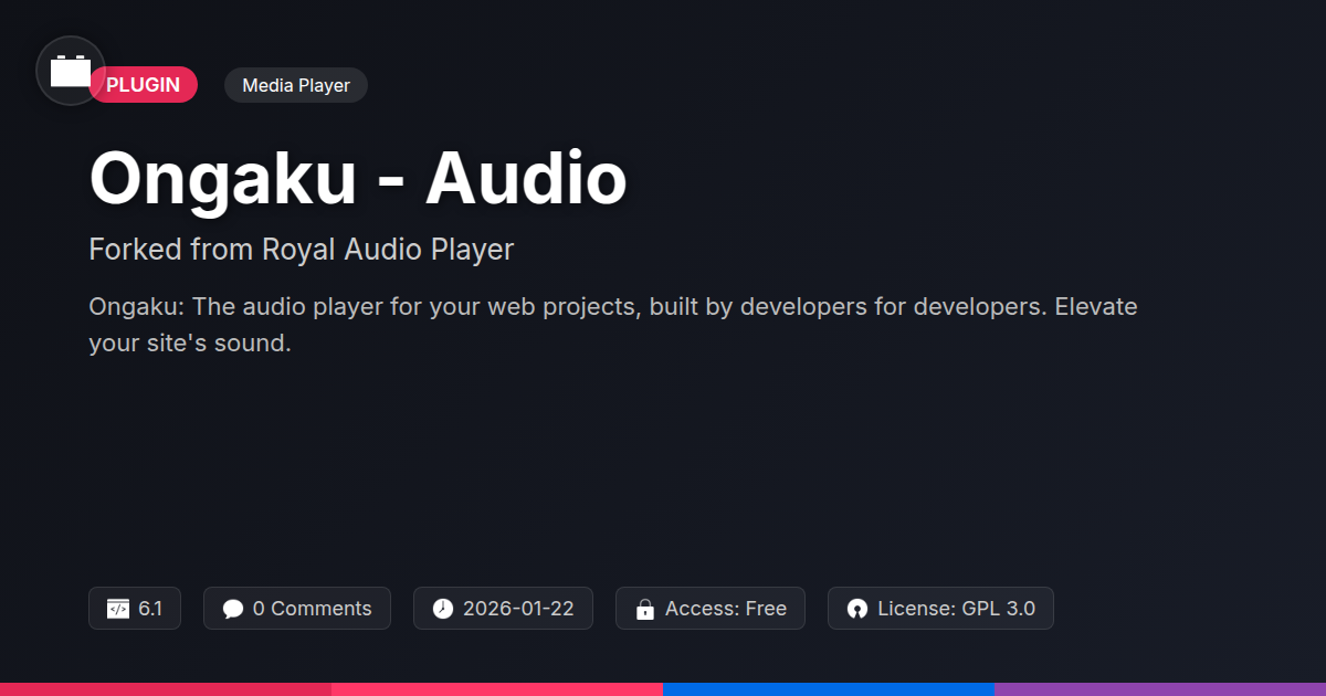 Is your website's audio playback stuck in the dial-up era? Do you find yourself wincing every time a visitor clicks play, bracing for the inevitable choppy mess or a player that just… gives up? Let's face it, delivering crisp, professional audio online shouldn't require a team of audio engineers or a second mortgage. We've all seen those clunky, amateurish audio players that make your carefully crafted content sound like it was recorded in a tin can. It's time to ditch the digital dread and embrace a solution that's as sophisticated as your development skills, yet as accessible as a well-placed !important. For years, a certain audio player has been quietly doing its thing, earning nods of approval from discerning users. But what if we told you there's a way to get that same level of polish, that same robust functionality, and that same ease of integration, but with the spirit of community and the freedom of open development at its core? Get ready to meet Ongaku – Audio, a project born from a desire to elevate web audio experiences without compromising on flexibility or innovation. This isn't just another plugin; it’s an evolution, a refinement, and frankly, a much-needed refresh for anyone serious about web audio. Let's dive into why this fork is poised to become your new favorite audio companion.