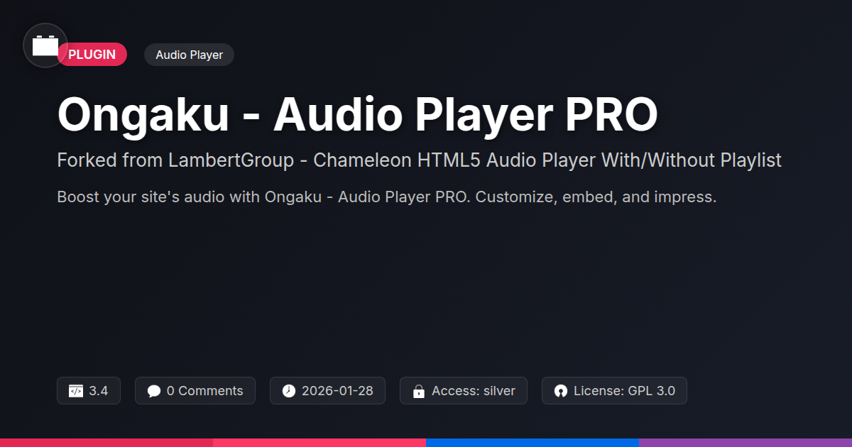 So, there you have it. You’re a developer, an agency, an open-source aficionado, and you’re probably tired of the audio-player-that-couldn’t. You need a tool that’s as robust and adaptable as your own skillset. Ongaku - Audio Player PRO isn't just another pretty face; it's a powerful, flexible, and developer-friendly solution built on a legacy of solid code. It’s designed to alleviate those common frustrations, giving you back control and freeing you up to focus on what truly matters: delivering exceptional digital experiences. Whether you're embedding a single track for a local artist or managing complex podcast playlists for a major brand, this player provides the foundation for success. Stop settling for mediocrity and start leveraging a tool that truly understands your needs. It’s time to make your audio shine, elegantly and efficiently. Go ahead, give your audio the stage it deserves.