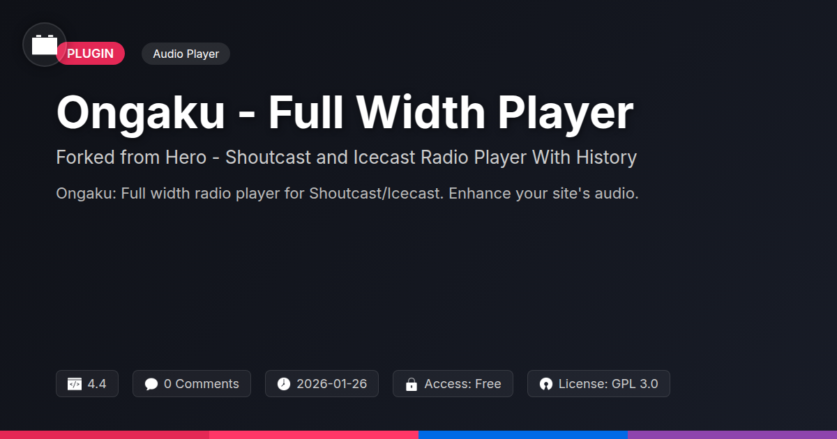 Let’s be real, in the digital cacophony of today, a clunky, outdated radio player isn't just an eyesore; it’s an active deterrent to engagement. You’ve poured your heart (and probably a significant amount of caffeine) into your site’s design and functionality, but that one little audio element is dragging the whole vibe down. It’s like wearing socks with sandals – technically functional, but a criminal offense to good taste. For us developers and agency wizards, finding that perfect blend of robustness, aesthetics, and sheer usability can feel like searching for El Dorado. We need something that doesn’t just play the tunes but enhances the whole listening experience, something that feels as polished as the rest of your meticulously crafted digital masterpiece. Enter Ongaku – the full-width audio player that’s been forked from a rather respectable lineage, boasting features designed to make your Shoutcast or Icecast streams sing. It’s not just about broadcasting; it’s about presenting your audio content with the flair and professionalism your clients (and their listeners) deserve. Ready to ditch the digital dead weight and embrace a player that actually works?