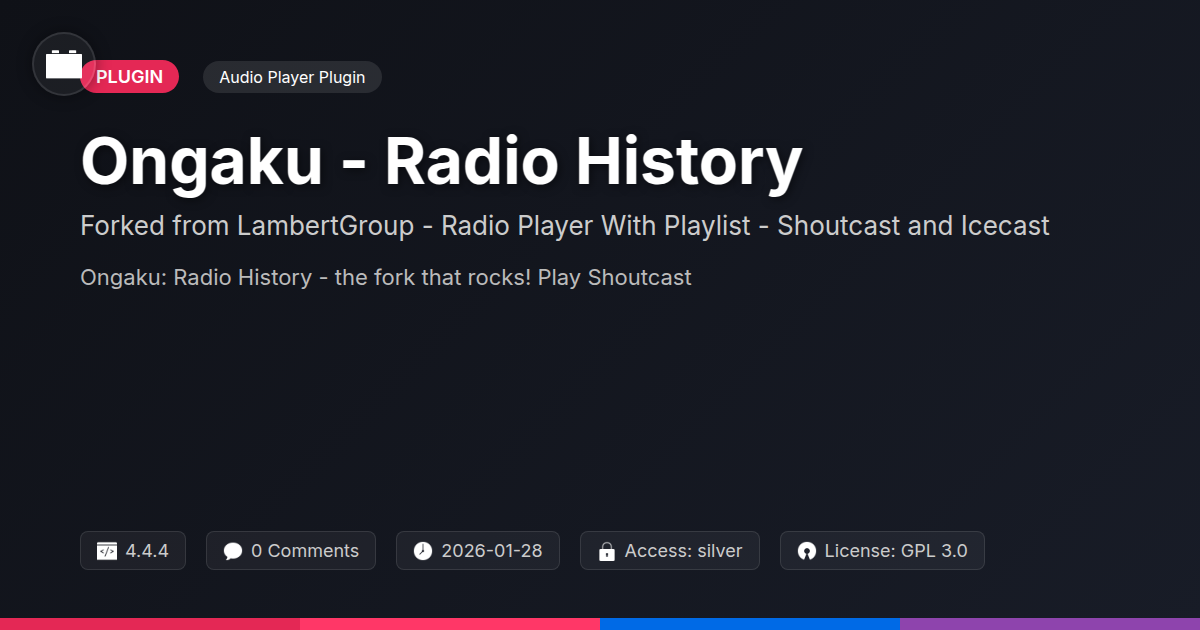 Tired of your website sounding like a dial-up modem trying to connect to the internet? Are you a developer who dreams in code and wishes your radio player plugin didn't require a PhD in astrophysics to configure? Fear not, fellow architects of the web and champions of all things open-source! We’ve all been there, grappling with plugins that are less user-friendly and more user-frustrating. You’ve scoured the digital landscape, seeking a solution that not only plays audio streams but does so with grace, power, and a dash of rebelliousness. A tool that understands your need for flexibility, your desire for control, and your occasional urge to poke fun at overly complicated interfaces. Enter Ongaku - Radio History, a project that took a perfectly good audio player and, dare we say, gave it a much-needed shot of caffeine. This isn't just a fork; it's a resurrection, a revival, a digital reinvention for those who appreciate good code, a solid playlist, and maybe a slightly sarcastic README. We’re talking about a solution that caters to the discerning developer, the agency powerhouse, and the open-source purist who knows that the best tools are the ones you can tinker with, understand, and actually enjoy using. So, buckle up, because we’re about to dive deep into a radio player that’s more than just a player; it’s a statement.