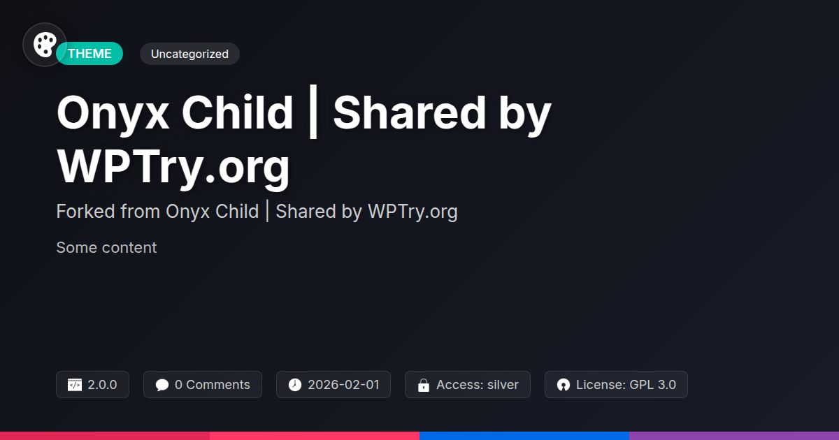 GrootMade is NOT affiliated with Onyx Child | Shared by WPTry.org or its original author. Onyx Child | Shared by WPTry.org™ is a trademark of its respective owner and use of it does not imply any endorsement or affiliation. This product has been forked under the GNU General Public License (GPL) and all non-GPL assets (such as proprietary images, fonts, and branding) have been removed. Distributing GPL-licensed code is 100% legal.
