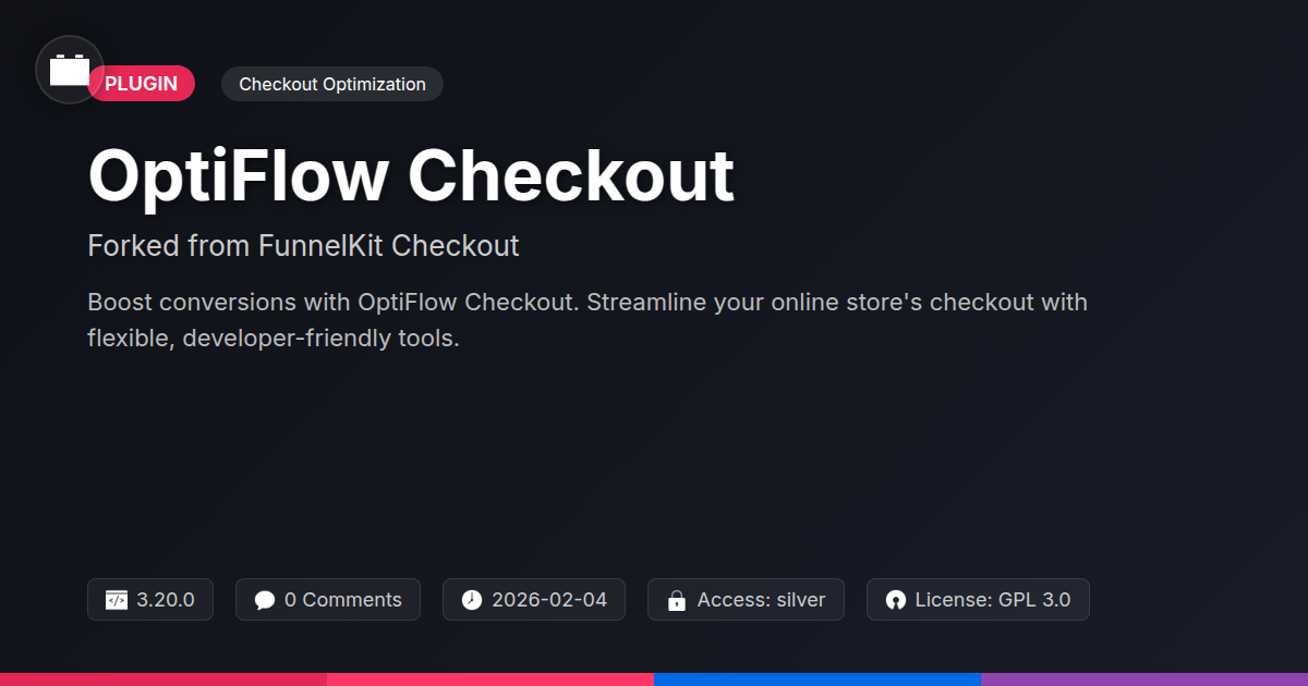 This is where OptiFlow Checkout, a robust fork inspired by the ingenious design of FunnelKit Checkout, steps onto the stage. It's not just another plugin; it's your secret weapon, built for those who appreciate elegant code, powerful functionality, and the liberating spirit of open source. It’s time to ditch the digital doldrums and embrace a checkout solution that works as hard as you do, offering unparalleled flexibility and intelligent optimization. Prepare to transform those abandoned carts into loyal customers, all while keeping your workflow efficient and your sanity intact. Get ready to flow.