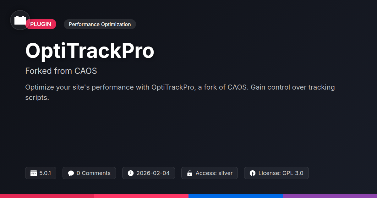 So, there you have it. OptiTrackPro isn't just another plugin; it's a declaration of independence for your website's performance and your users' privacy. We’ve navigated the labyrinth of slow-loading pages, the digital equivalent of being stuck in traffic with a broken air conditioner, and discovered a tool that offers clear skies and an open road. For the developers who cringe when they see a site crawl at a snail's pace, for the agencies who pride themselves on delivering lightning-fast, secure experiences, and for the open-source aficionados who appreciate elegant solutions built on collaborative spirit, OptiTrackPro offers a compelling proposition. It’s about taking back control, one judiciously placed script at a time. It’s not about removing functionality for the sake of it, but about intelligently managing it to ensure your site performs at its absolute peak without unnecessary baggage. Think of it as decluttering your digital home – you keep what you need, get rid of what you don’t, and suddenly, everything feels lighter, faster, and more efficient. This fork represents a commitment to continuous improvement and a dedication to providing you with the most robust, flexible, and performant script management available. It's time to stop letting third-party scripts dictate your site's pace and privacy. It’s time to wield the power of OptiTrackPro and build websites that are not only beautiful and functional but also blazingly fast and respectful of their users. Give your site the upgrade it deserves, and experience the difference.