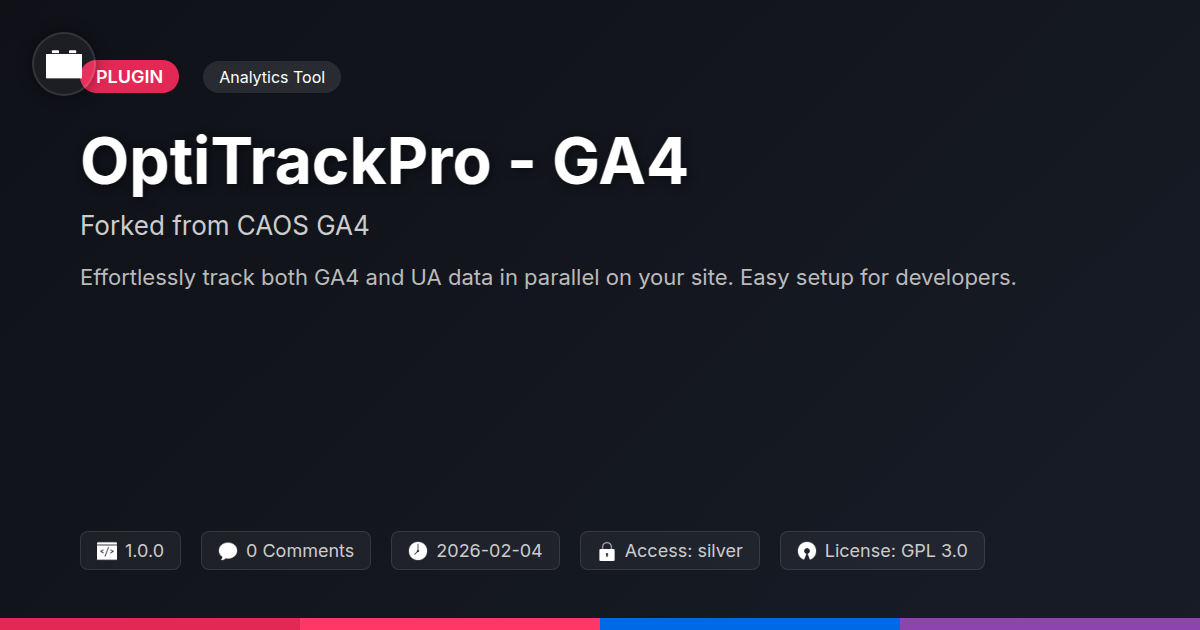 GrootMade is NOT affiliated with CAOS GA4 & UA Paralel or its original author. CAOS GA4 & UA Paralel™ is a trademark of its respective owner and use of it does not imply any endorsement or affiliation. This product has been forked under the GNU General Public License (GPL) and all non-GPL assets (such as proprietary images, fonts, and branding) have been removed. Distributing GPL-licensed code is 100% legal.