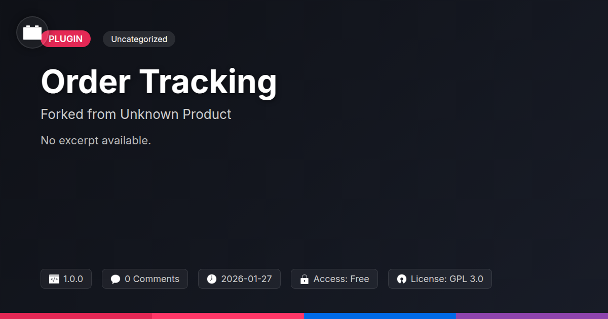 GrootMade is NOT affiliated with Order Tracking - WordPress Status Tracking Plugin or its original author. Order Tracking - WordPress Status Tracking Plugin™ is a trademark of its respective owner and use of it does not imply any endorsement or affiliation. This product has been forked under the GNU General Public License (GPL) and all non-GPL assets (such as proprietary images, fonts, and branding) have been removed. Distributing GPL-licensed code is 100% legal.