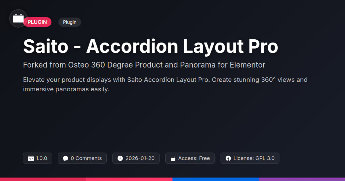 Ever feel like your product presentations are stuck in a time warp, looking more like a grainy flipbook than a cutting-edge digital experience? Are you tired of static images that tell a story only half as well as a poorly told joke? Or perhaps your clients are asking for that 'wow' factor that makes their online catalog pop, and you’re staring blankly at your screen, contemplating a career change to professional napping? If you’re a developer who’s wrestled with creating immersive product displays, or an agency looking to offer something beyond the mundane, then you’ve likely felt the pain of underwhelming visual tools. Enter Saito - Accordion Layout Pro, the open-source hero forked from a legendary lineage, ready to rescue your sanity and your client projects from the clutches of visual mediocrity. We’re talking about a tool that doesn’t just present products; it invites users to experience them, spinning them around, zooming in, and generally giving them the virtual once-over they deserve. Forget clunky interfaces and developer headaches; this is about crafting intuitive, engaging, and downright jaw-dropping product showcases with the ease of, well, not pulling your hair out. Consider this your digital toolkit's new best friend, designed for anyone who believes that seeing is truly believing, especially when it comes to selling something online.