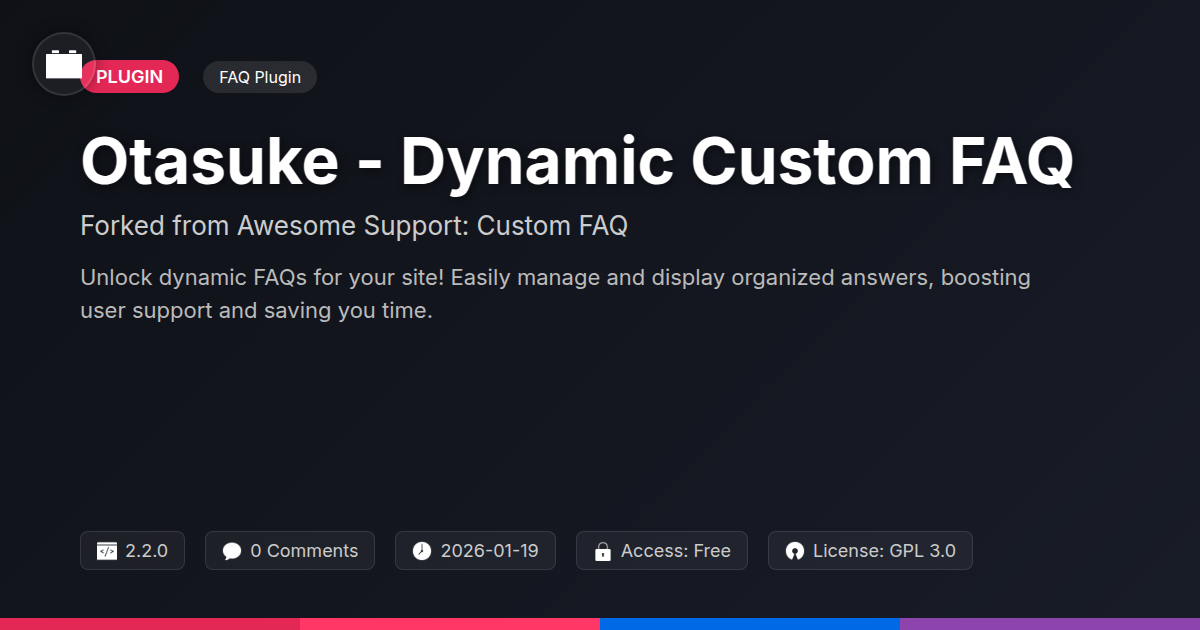 So there you have it. Otasuke - Dynamic Custom FAQ isn't just another plugin to clutter your dashboard; it's a strategic ally in your quest to provide exceptional user support without sacrificing your sanity or your precious development time. We’ve seen how it transforms those mundane, repetitive queries into a well-oiled, dynamic knowledge machine, ensuring your users get the answers they need, when they need them. For us developers, agencies, and open-source aficionados, time is the ultimate currency. Spending it answering the same question for the tenth time is like watching paint dry – if the paint was designed to annoy you specifically. Otasuke liberates you from that cycle, offering a robust, customizable, and frankly, pretty darn smart way to manage information. It’s about working smarter, not harder, and that’s a mantra we can all get behind. Think of it as your secret weapon against the tyranny of the inbox. By embracing the dynamic nature of Otasuke, you’re not just improving your site’s usability; you’re elevating your entire user experience strategy. You’re building a resource that grows with your project, adapting to new needs and keeping your audience informed and happy. And let's be honest, a happy user is a loyal user, and a loyal user often means a more successful project. So, go ahead, ditch the static dread and embrace the dynamic power. Your future, less-stressed self will thank you.